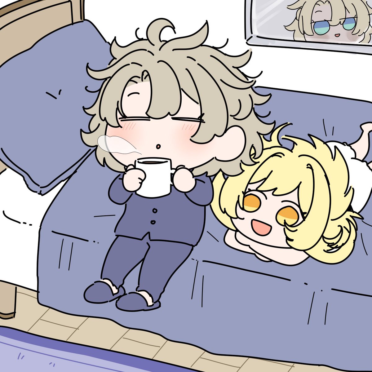 寝起きで髪の毛爆発してるベドセンとそうはならんやろみたいな寝癖つけたほたゃ