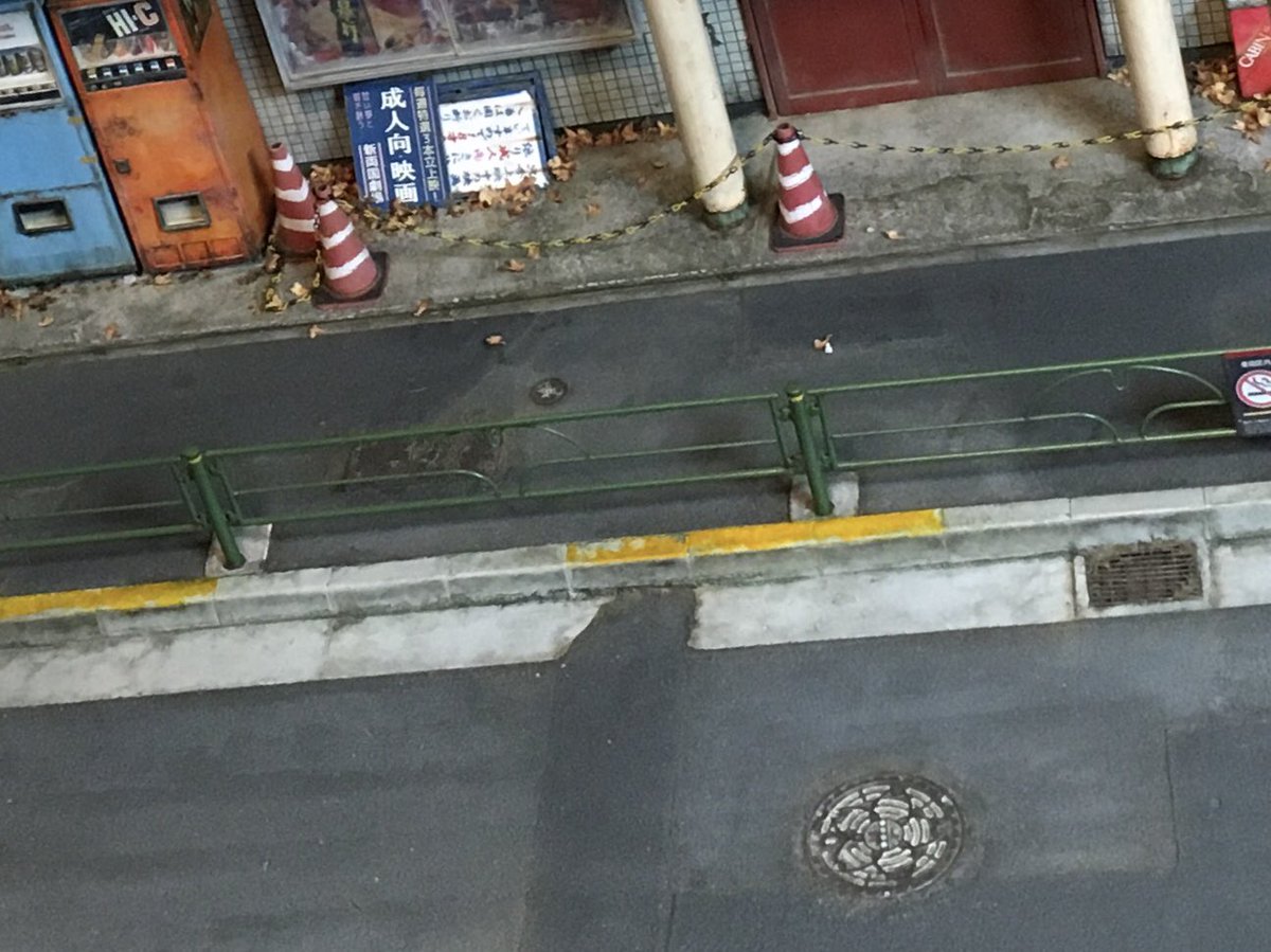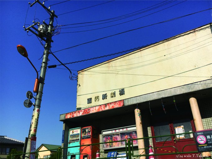 #一瞬でもリアルに見えたらRT アスファルトの道路と閉館した映画館の入り口 の模型