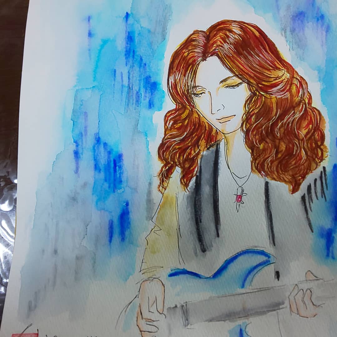 0 8 横顔の坂崎さんに萌え~っとなったジャケットを見て描いてみました。 ギターは難しいのであえて、アタリだけ。 #坂崎幸之助 #THEALFEE #イラスト #友よ人生を語る前に #水彩画 20/11/08 07:53