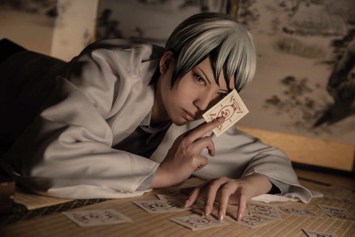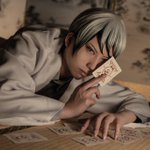 【※cosplay/鬼滅の刃】 愈史郎. photo.よこくらさん(@2019bt42 ) 2枚目動き出そうと #セルフひらみ したらめちゃくちゃカルタ強い人みたいになった笑