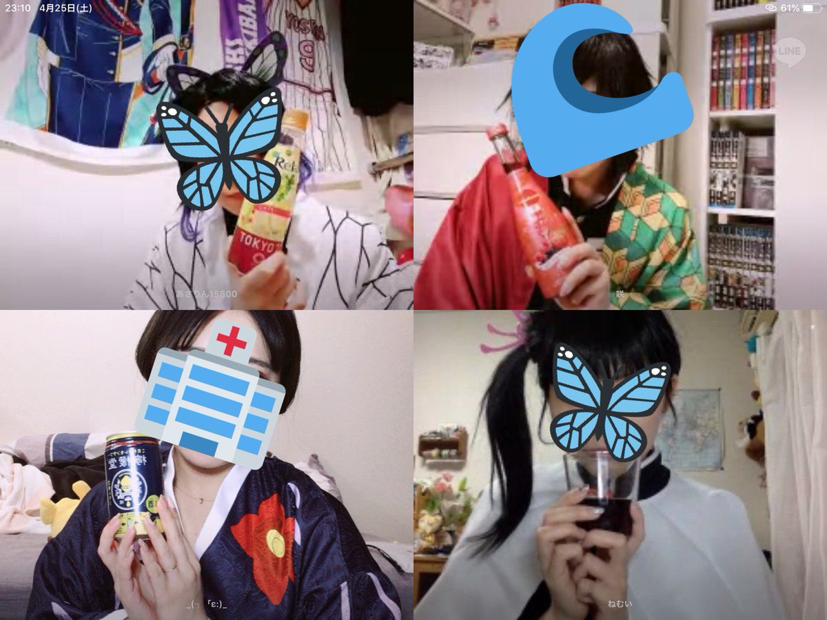 昨日21時〜3時くらいまで愉快なオタク達と鬼滅コスしてオンライン飲みしてた🍻💕 途中で隊服に着替えたけど捏造(ただの部屋着w)ぎゆさんやったら先生みたいになった笑