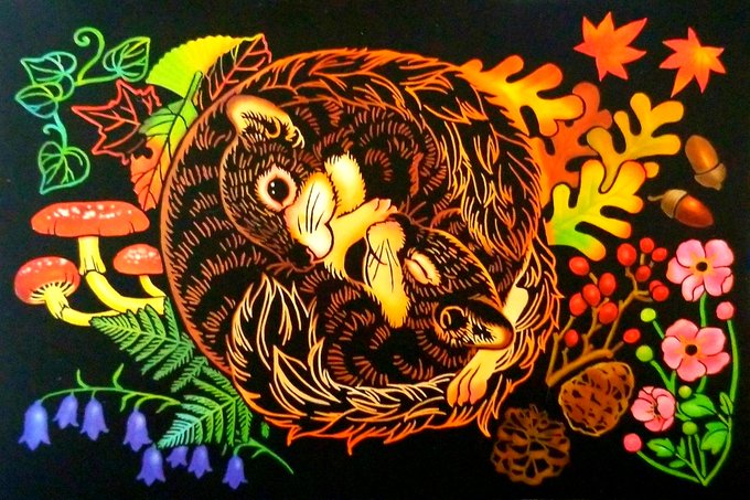 【518枚目】 秋っぽいシートにしてみた❣️ このシリーズは細かいけど削りやすいしカラフルだから楽しい✨ #スクラッチアート #季節の花と動物たち