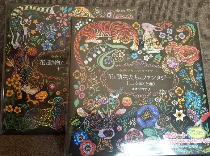 予約してたのにやっとやっとやっと 届いたー( ー̀ н ー́ )💨 #スクラッチアート #花と動物たちのファンタジー十二支編