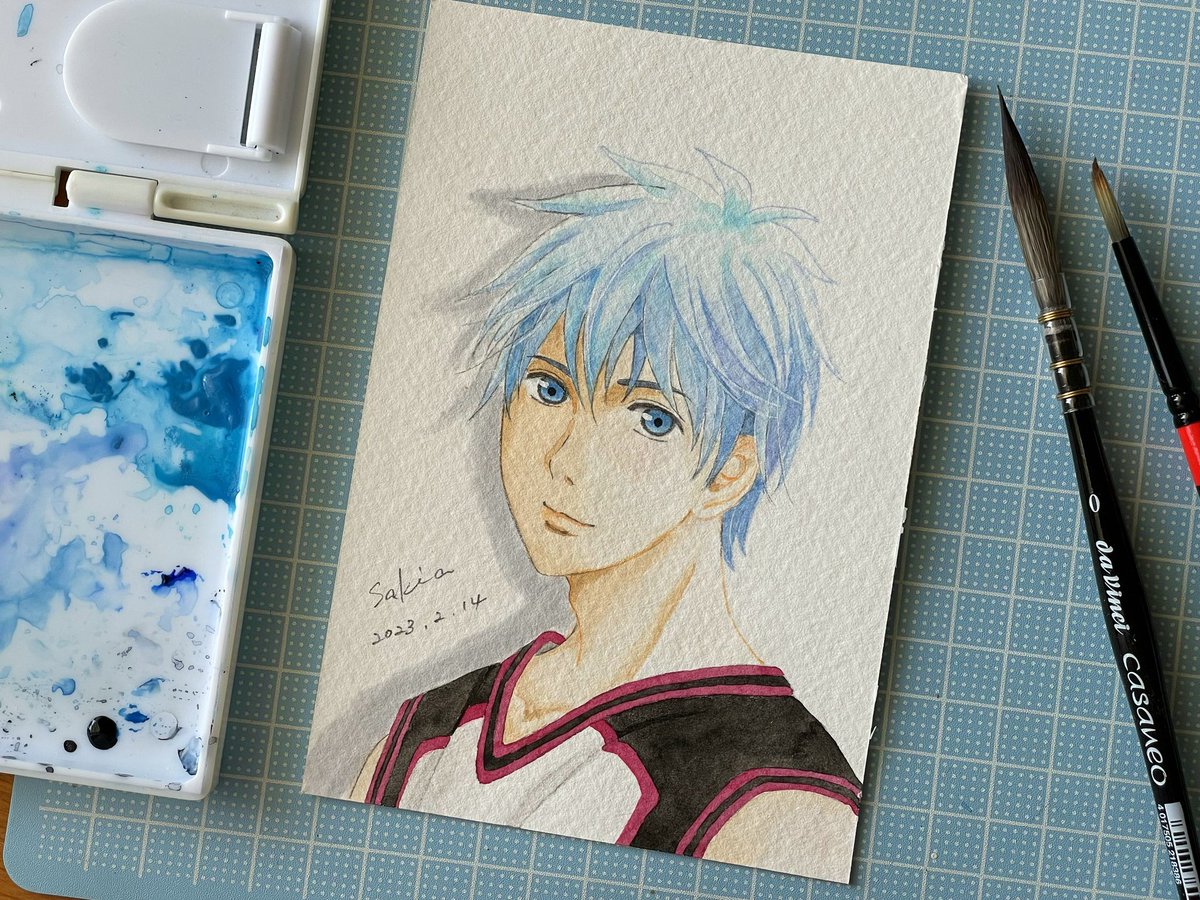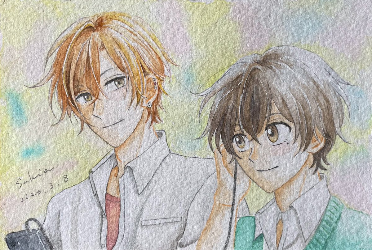 この前買った顔彩の「曙色」を使用。 オレンジがかったピンク色です。 「曙色」とは夜が明け始める頃、空がわずかに明るくなり朝焼けに染まった東の空の色のことらしい。 けれど実際の顔彩は曇り空の下に咲き誇った淡い桜の花みたいだと思った。 #BFアナログお絵描き部