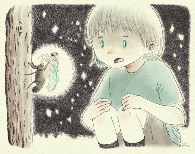 セミの脱皮は光ってるように見える cicada molting #イラスト #illustration (苦手な方ごめんなさい🙇♀️)