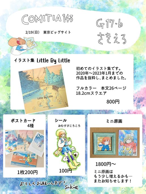 2月19日の東京コミティア143、【G17a】のスペースをいただきました!イラストまとめ本、ポストカード、シール、ミニ原画など販売予定です。よろしくお願いいたします🍀 #コミティア143 #COMITIA143
