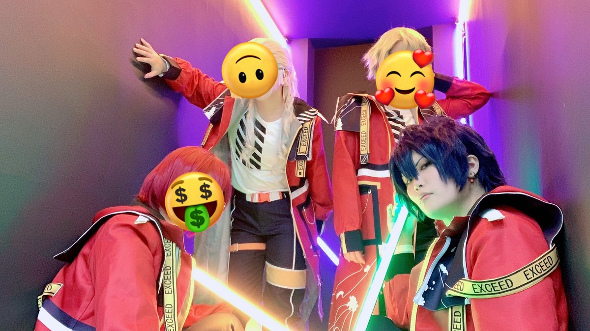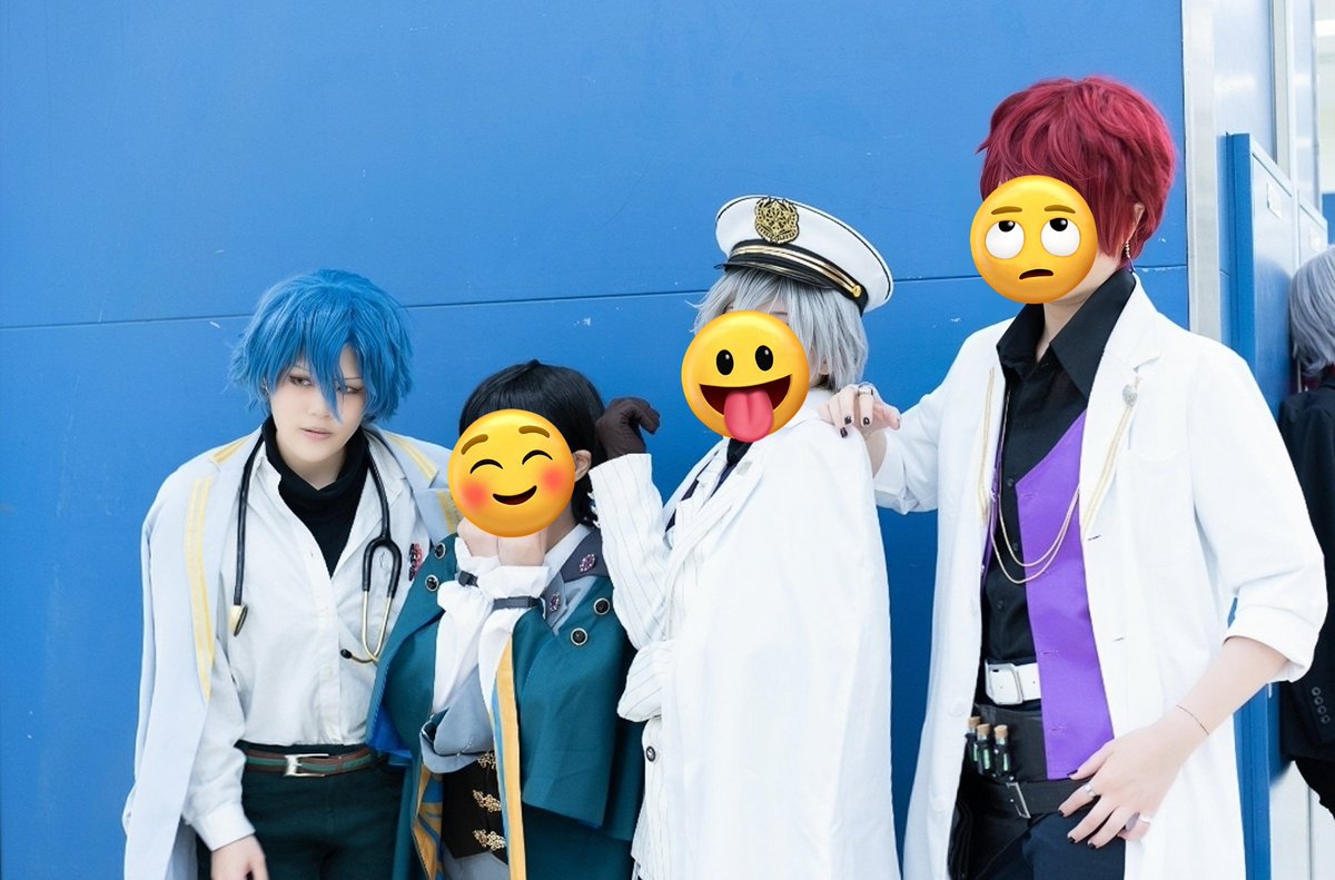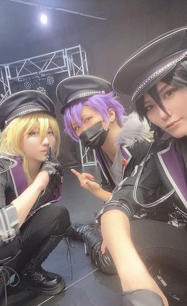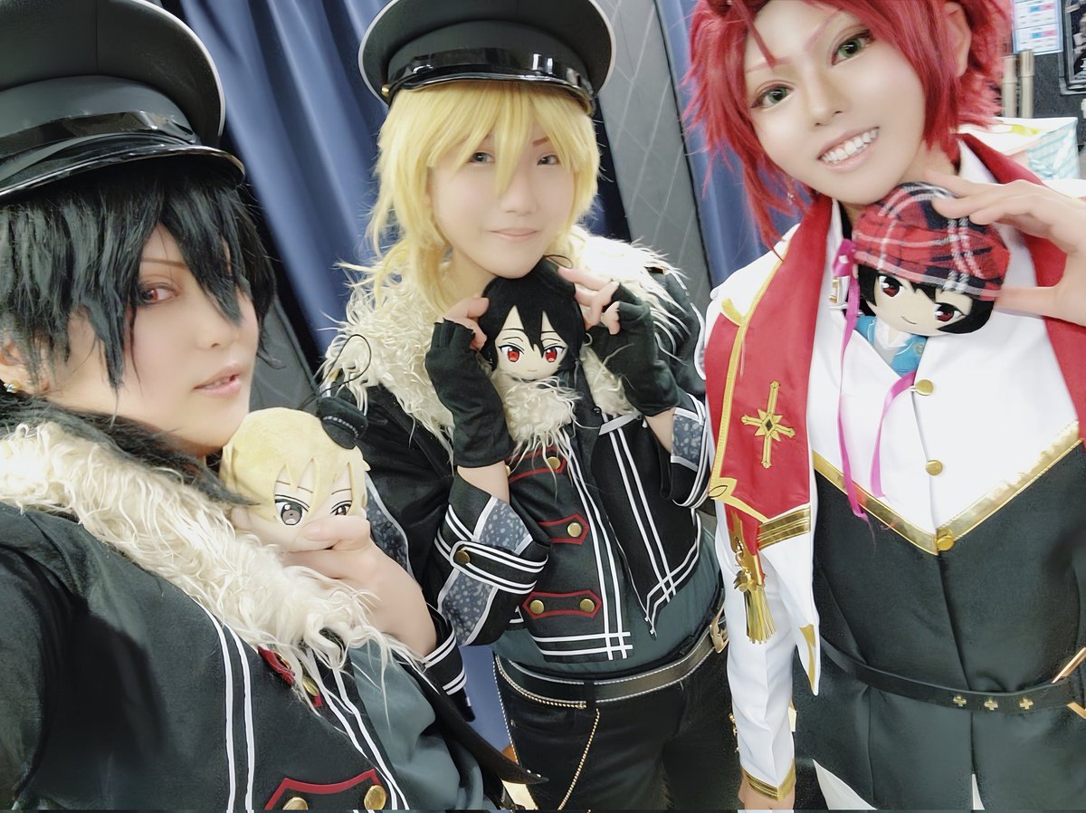 #コセット池袋オフ会 旧ユニUNDEADの二枚看板に挟まれるオペレッタの真緒~!! @sakioooox 零 @izuleo_yana0913 薫 @tsukuno_cos 真緒 ※軽く加工してるよ!※ いじる程じゃなかったので、私以外の2人は←肌キレイキレイのみ~