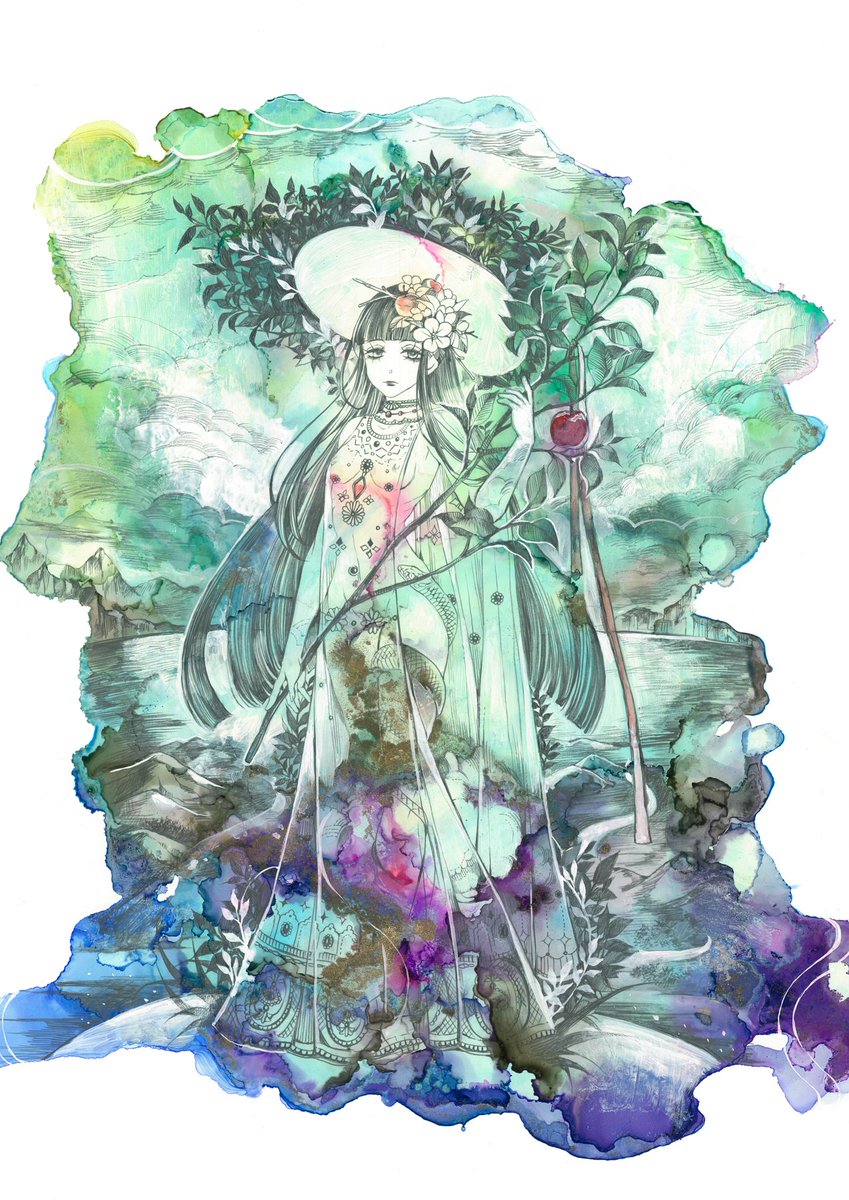 リリスをイメージして描いたのでリンゴの木の枝と蛇がいる。 アルコールインクアートはまだ10枚も描いてないような初心者だけど慣れてきたら楽しくなるような気がする。 色の発色が抜群に好き。 #アルコールインクアート