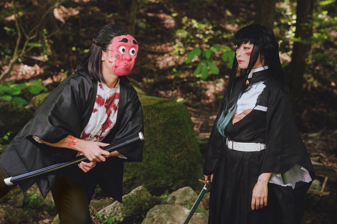 #感謝のやまびこが聞こえる里 ※コスプレ注意 鍛i冶の素顔 鋼i鐵i塚i蛍…さらしな(@sarashina_yuko) 鉄i穴i森i鋼i蔵…さこめ photo…やまセミさん(@yamasemi_)