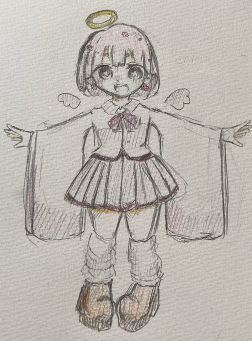 なんか可愛かったから天使にしてみた! あの、右端のサインみたいなやつはイキって描いただけです。はい。 ♥♻️巡回します!!!!! #イラスト好きさんと繋がりたい #中学生絵描きさんと繋がりたい #イラスト