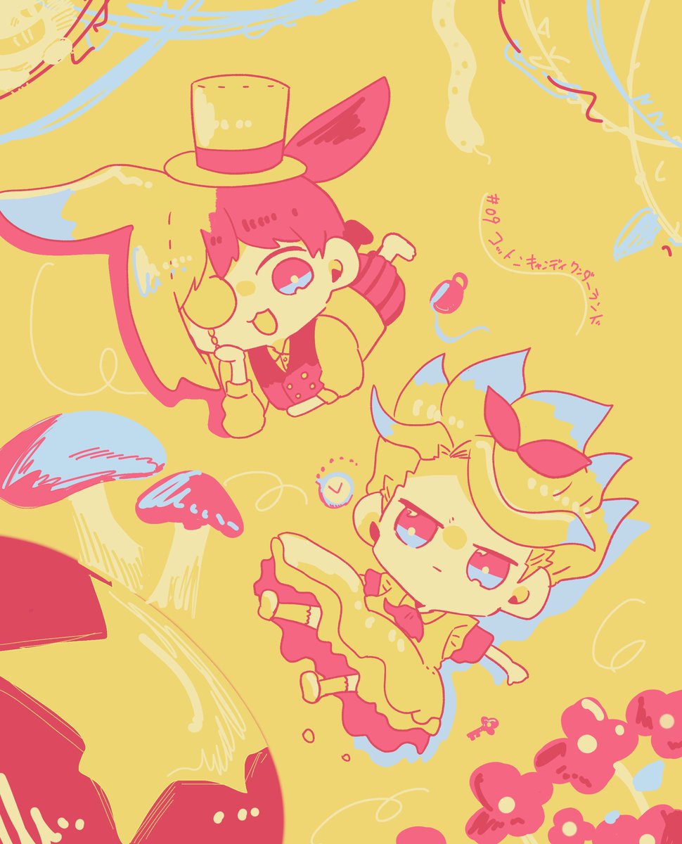 # カラーパレットからリクエストされた番号のカラーを使って描く リクありがとうございました! 9番のコットンキャンディワンダーランド🚀と🃏で描かせていただきました! ※女装注意