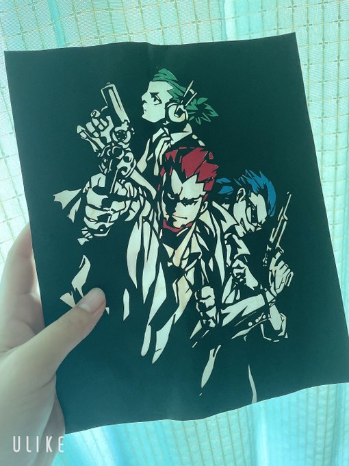 御三方の切り絵! 今回はプラスチックです 離れてても切れるのいいね #2bropics #切り絵 #兄者 #弟者 #おついち