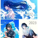 218 1743 3年間の616絵 梅雨時期のせいか全部青い笑 今年はアニメの影響で目大きめだな…2年前のお顔が1番好みに描けた気がする😂 23/06/16 20:32