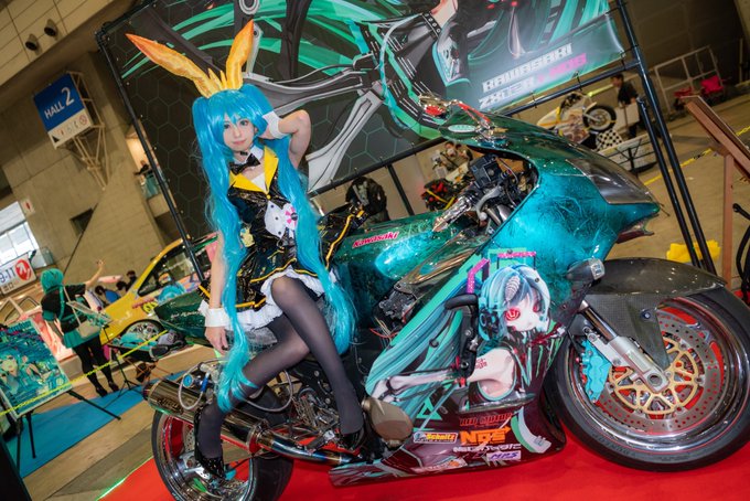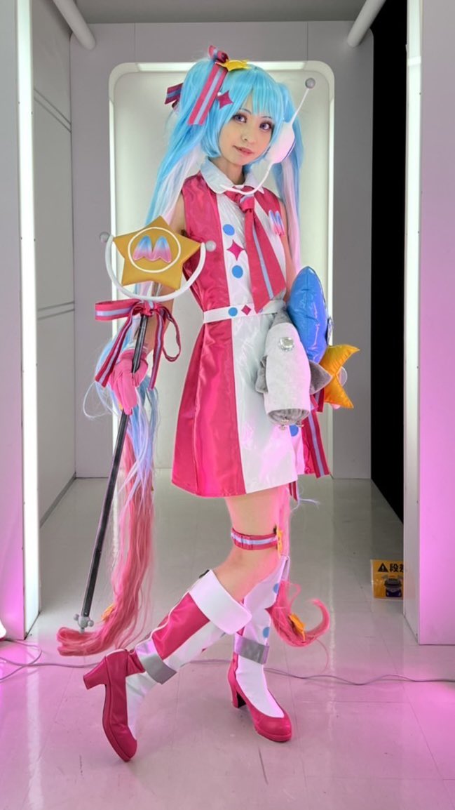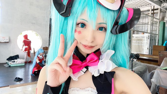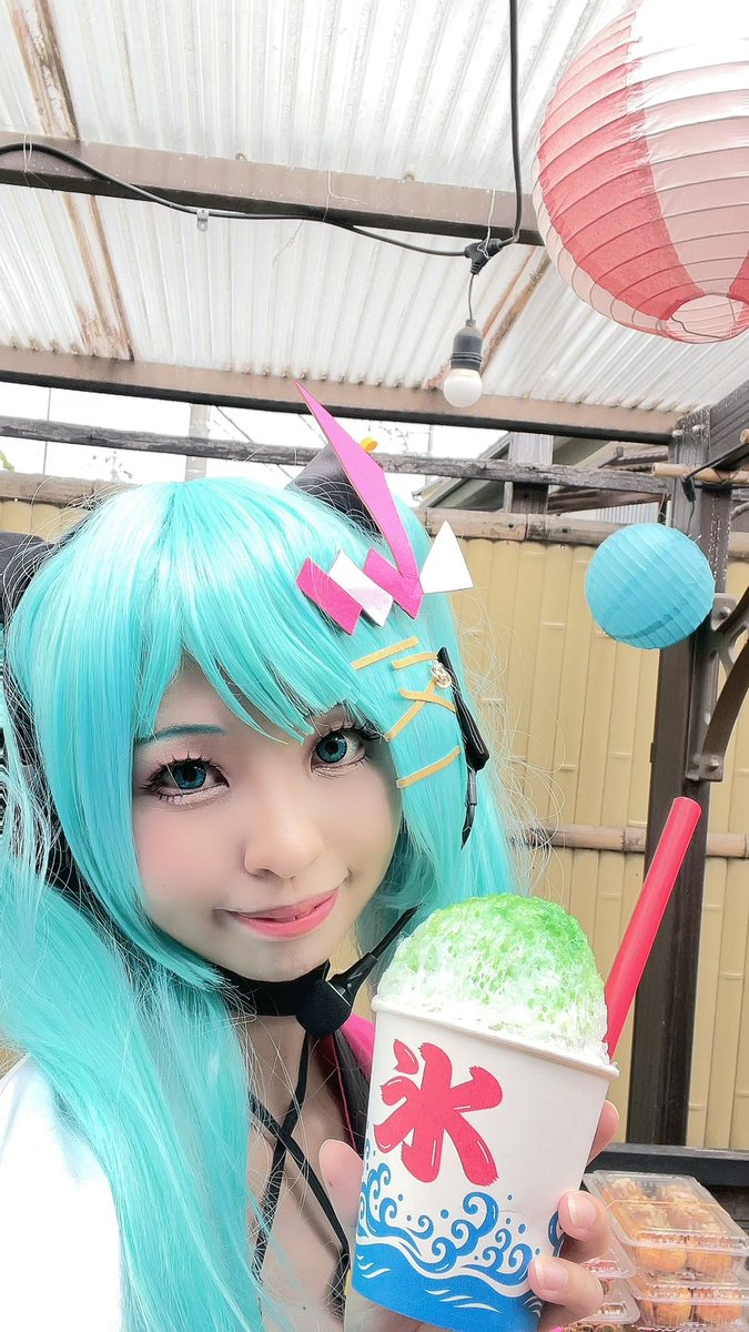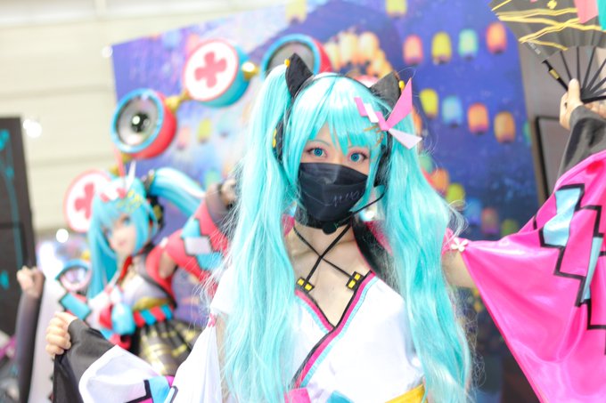 ⚠️Cosplay マジカルミライ2020 夏まつりver. 等身大立像と一緒に! 撮影:❄️ミネ❄️様(@MineMikuBRZ ) #マジカルミライ10thコスプレ #コスプレ #cosplay