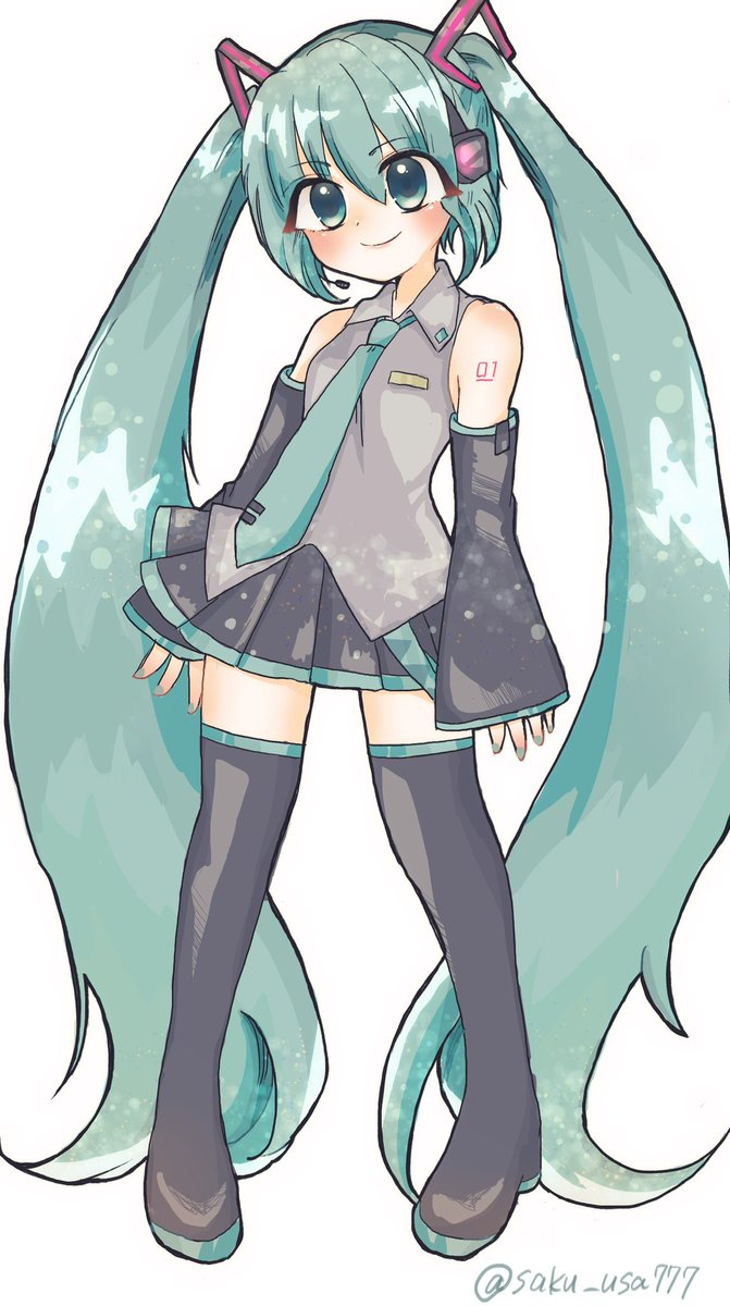 チビミクちゃんも描きました~😊 透明感って難しい…💦 腰が痛いので寝ます😇 #HatsuneMikuDraw