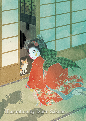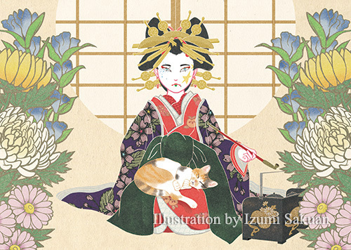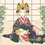 先代ツナさんをモデルに描いた「花魁と猫」シリーズ。 雨の日にひょっこりベランダから入ってきて、18年間人生を共にしてくれました。かわいかったなぁ。 #猫の日 #猫の日イラスト