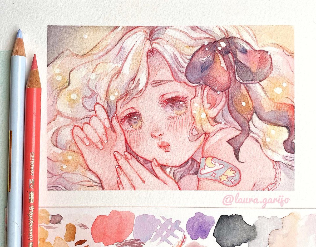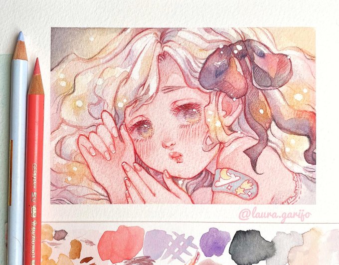 Probando materiales nuevos 🥰 🌼 ¡Hace mucho que no hacía un dibujo así grandote! Toy contenta ://D #watercolor