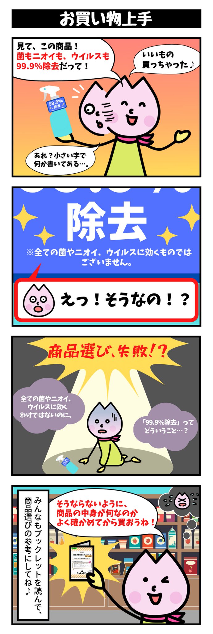 いっふ~☀ さくらいふちゃんだよ🌸 #さくらいふちゃん4コマ✨ 今回は商品選びに関するお話! 感染症対策の商品を購入するときは みんなも注意してね⚠‼ #4コマ漫画 #4コマ #漫画が読めるハッシュタグ #衛生習慣 #さくらいふちゃん