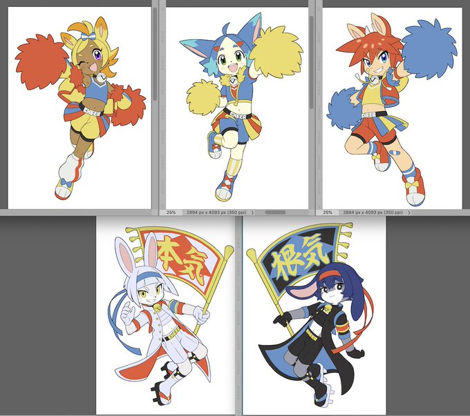 #今月描いた絵を晒そう 5/5のコミティア144(確定)、5/6のけもケット13(抽選待ち)に向けて、ケモノ少年チアリーダー5人組『チアキッズ』を生み出しました。 キャラ設定本や、アクリルスタンドなどのグッズを作ります! コミティアはスペースNo「B39a」です。 ケモノ好きの方に届きますように!