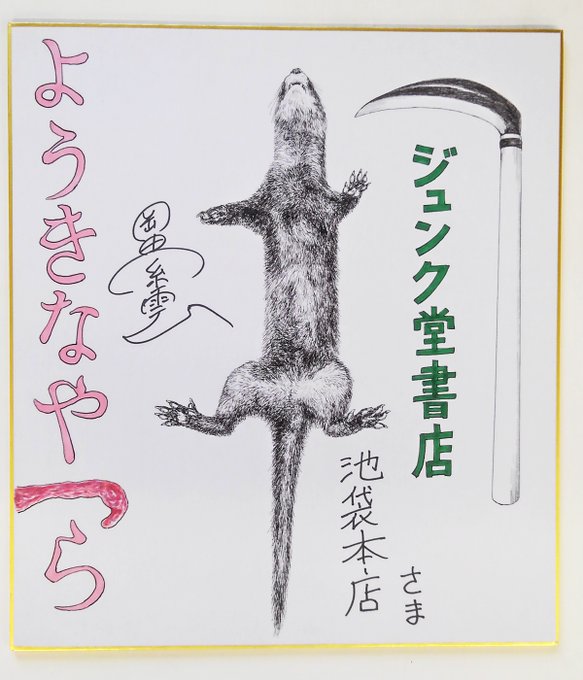 こちらの色紙は、鎌、鼬。 「つ」が。。。。 単行本『ようきなやつら』発売中です!