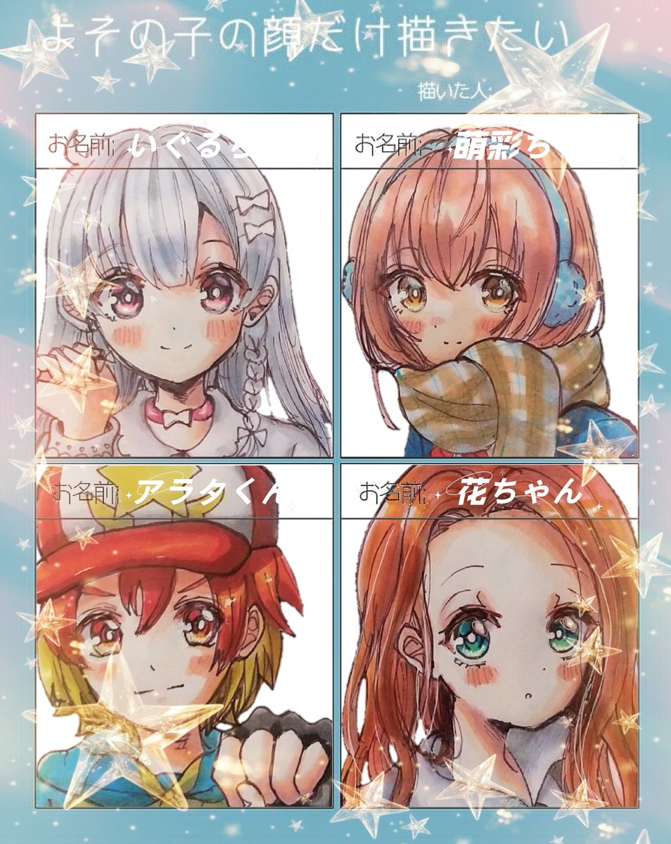 #よその子の顔だけ描きたい が完成しました!!お待たせしてしまいすみません😭お気に召してもらえたら嬉しいです(〃∇〃)参加してくれて本当にありがとうございましたー!楽しかったです☺ ✨✨✨✨✨✨✨✨✨✨✨✨✨✨