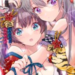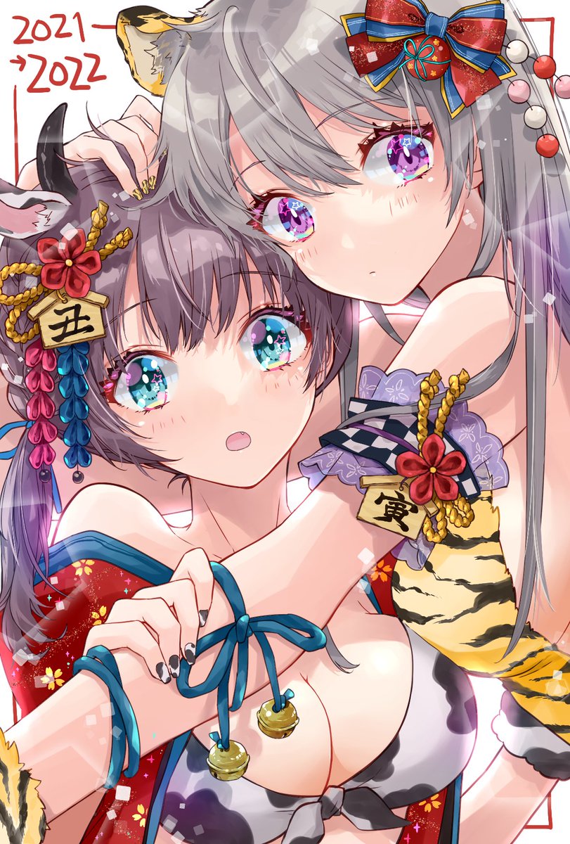 今年の年賀状の絵です! 丑年に描き損ねたリベンジの牛柄ビキニちゃんと虎柄ちゃん♡🐄🐅 今年はオリジナルたくさん描きたいのでタグ失礼します〜🙏 #年賀状イラスト #創作クラスタさんと繋がりたい #百合