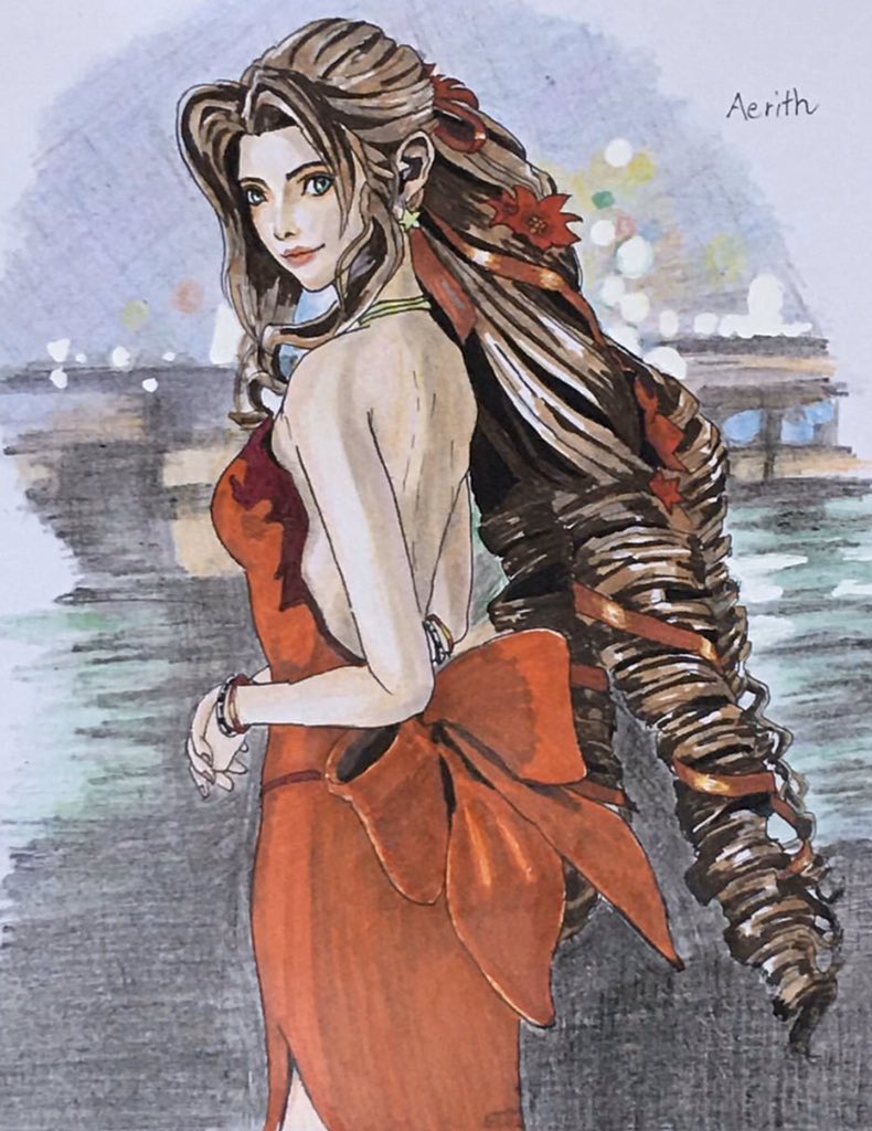 1 11 ファイナルファンタジー7 リメイク エアリス ドレスアップバージョン カラーイラスト練習 #ファイナルファンタジーVII #ファイナルファンタジー7 #エアリス #赤いドレス #イラスト #絵 #コピック #マーカー #筆ペン #色鉛筆 20/05/16 22:41