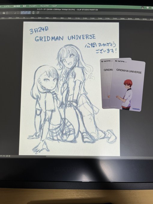 黒にゃんと行くの楽しみだー絵は進んでなかった。何日前からやっとんねんお前…六花と夢芽仲良くなれんのかなー楽しみだなー楽しみだなーオーイシの曲も作中で流れんの楽しみだなー #落書き #グリッドマンユニバース