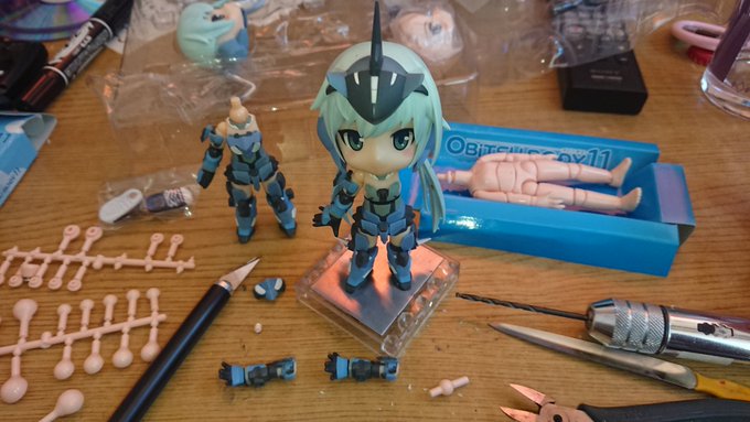 スティ子の折れた左肩関節部治してる。 前も左肩だった。 #キューポッシュ