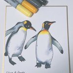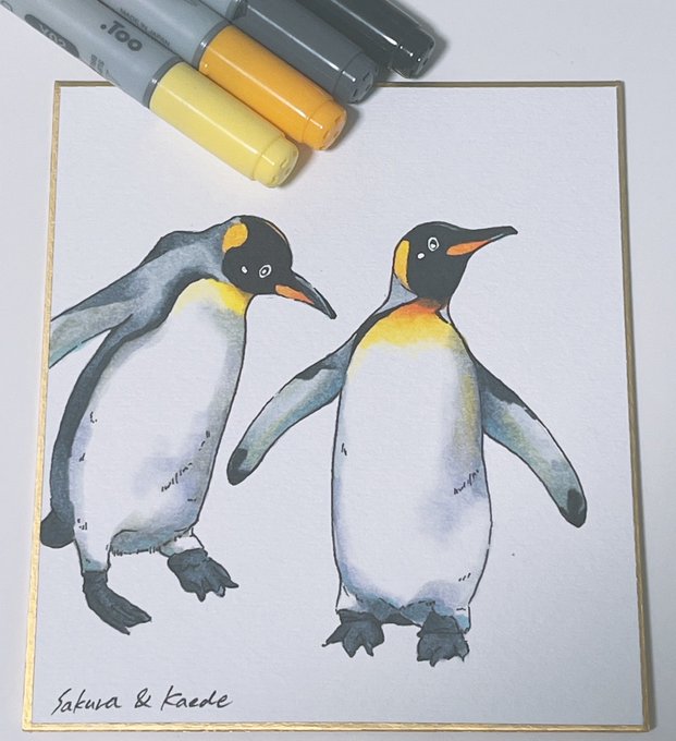 これも友達に渡す作品です🐧✨✨ はじめてペンギン描いたけど割と可愛く描けてよかったです!! #絵描きさんと繋がりたい #絵描きさん交流会 #絵柄が好みっていう人にフォローされたい #ペンギン #キングペンギン #水族館の人気者
