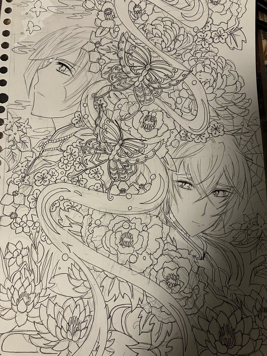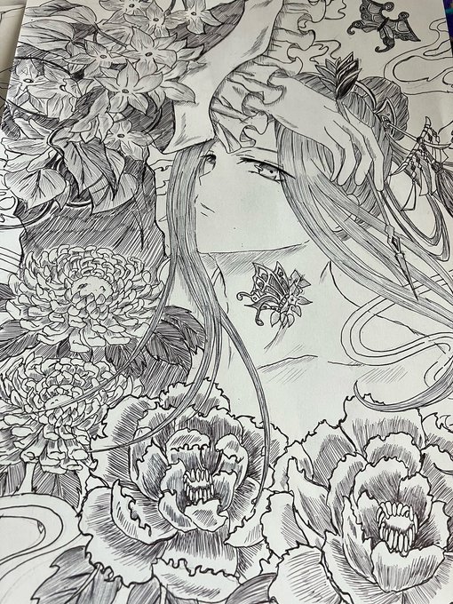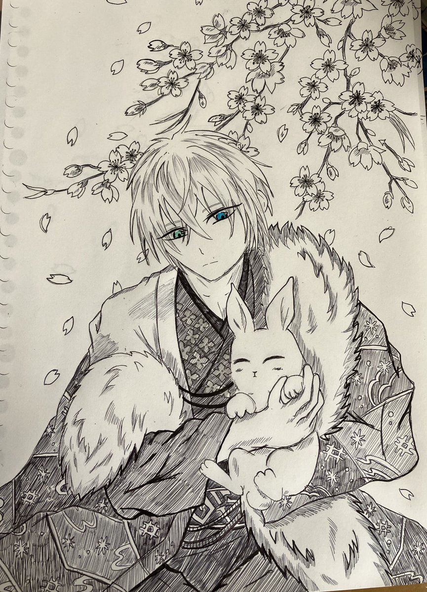 前に描いた茜花兄さん🌸 花描いてるうちに頭おかしくなるかと思ったわwwどこをどう塗るかで脳内パニック😵💫🧠 シリーズで1番好きなキャラかもしれぬ(๑♡∀♡๑) #お絵描き好きさんと繋がりたい #アナログイラスト #夜来香の柩