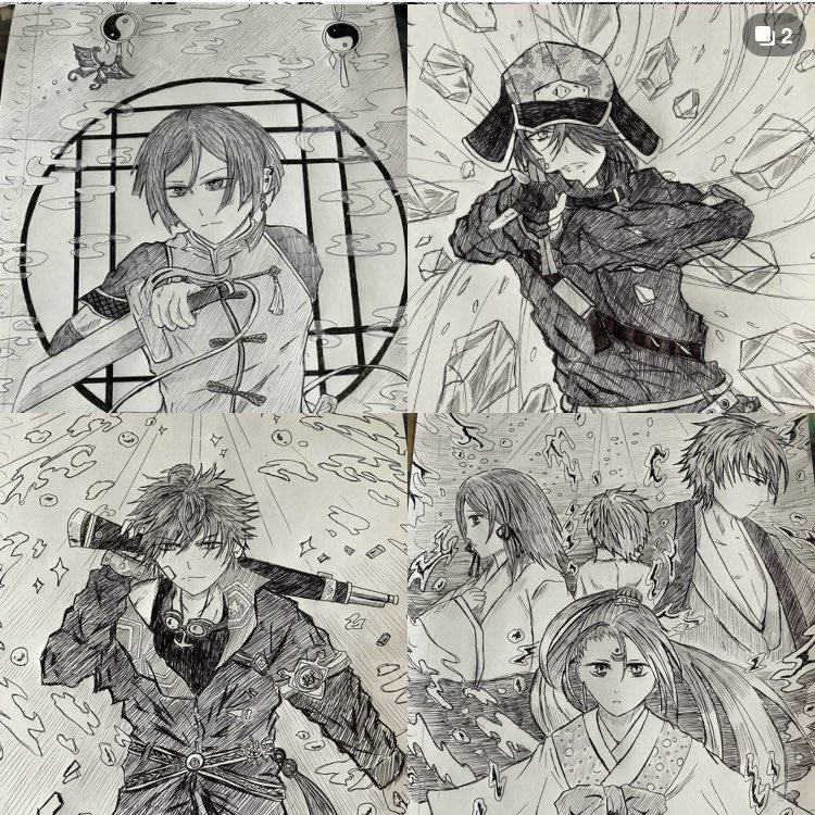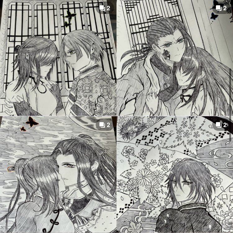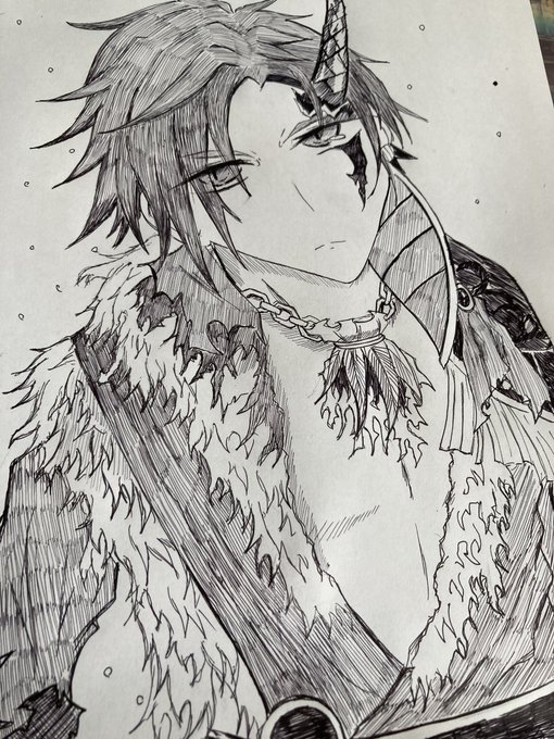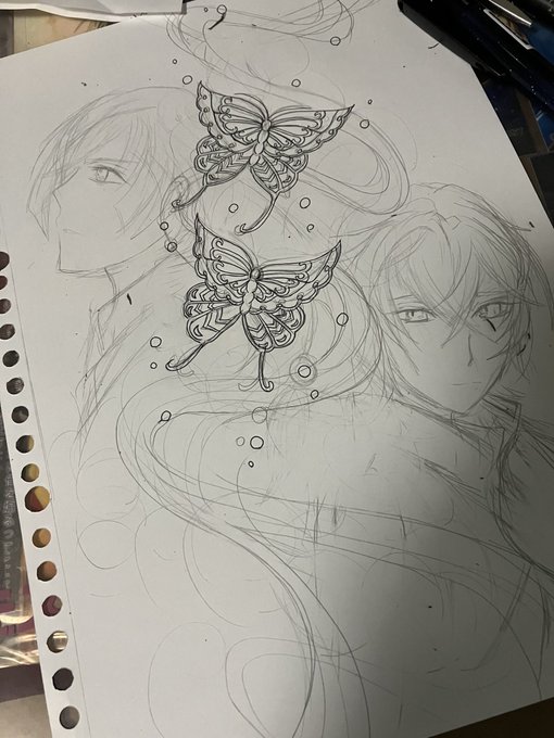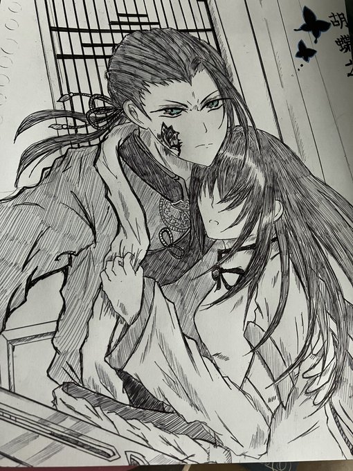 はい、胡蝶の首領のご登場🦋.*˚ 宵藍ですね😆 ヒロインの危機に現れた感じをイメージして描いたもの、首領ブチ切れてます⇽笑 次、マジ誰描こうかな( ꒪꒫꒪) #お絵描き好きさんと繋がりたい #アナログイラスト #夜来香の柩