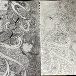 この前のイラスト過程 1枚目、下描きからのペン入れ💦 2枚目、これ、上手く塗れるかな🥹 3枚目、目がおかしくなる😵💫🤍笑 4枚目、死にかけながら早朝に完成🖼 こんな感じです_:(´ཀ`」 ∠):_ (⊃ Д)⊃≡゚ ゚ウワァァァ #お絵描き好きな人と繋がりたい #お絵描きさんと繋がりたい #アナログイラスト