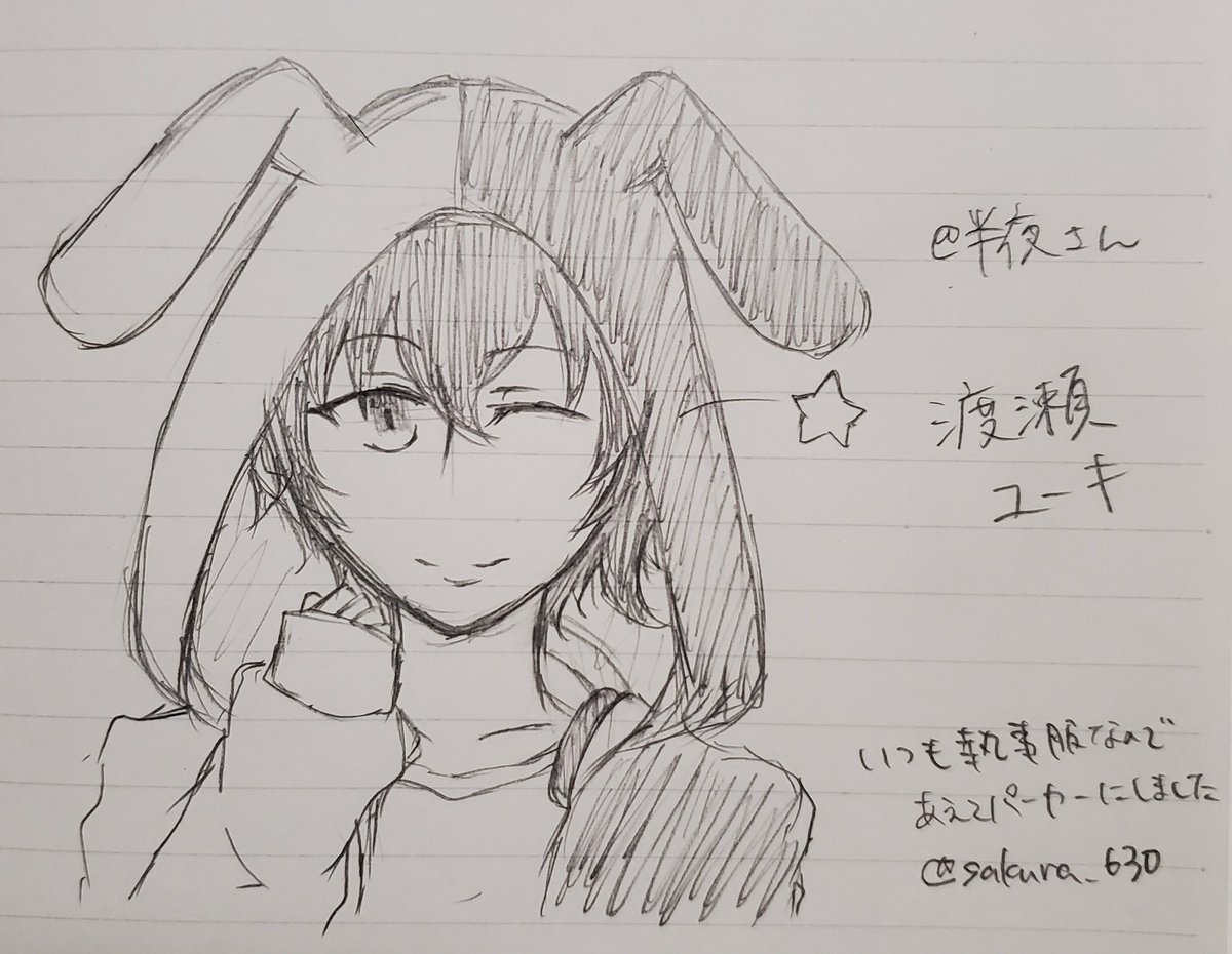 1 9 #わた静画 #フォロワーさんの推しが描きたい 半夜さん→推し:渡瀬 ありがとうございます😉⭐️ うさみみパーカーかわいいよね…… 21/12/29 17:47