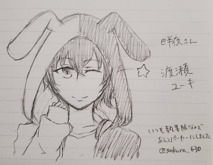 #わた静画 #フォロワーさんの推しが描きたい 半夜さん→推し:渡瀬 ありがとうございます😉⭐️ うさみみパーカーかわいいよね……