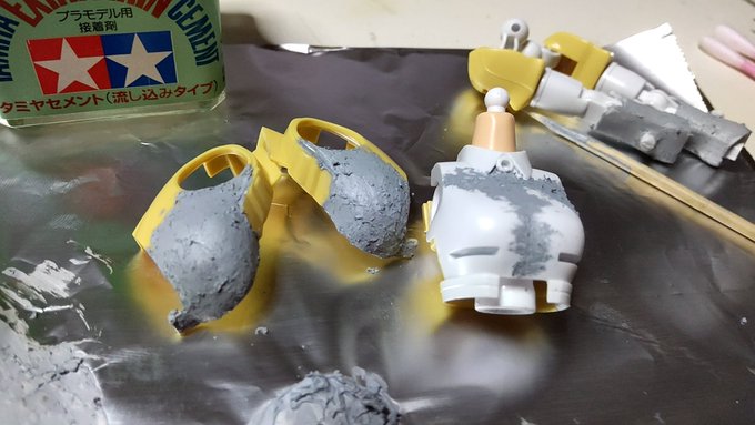 0 8 #ガンプラ 胸と下回りにパテ盛り ラッカーパテが1本無くなりそう笑 22/08/02 22:01