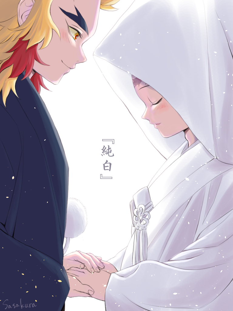 お題『夫婦』+1h(日雛) 未来の大人の二人です。背景は使いまわし。 ヒツは大きくなるまで言わなくて、雛ちゃんはずっと待ち続けているのかもしれない。 #Re日雛版深夜の真剣お絵描き一本勝負