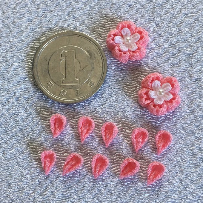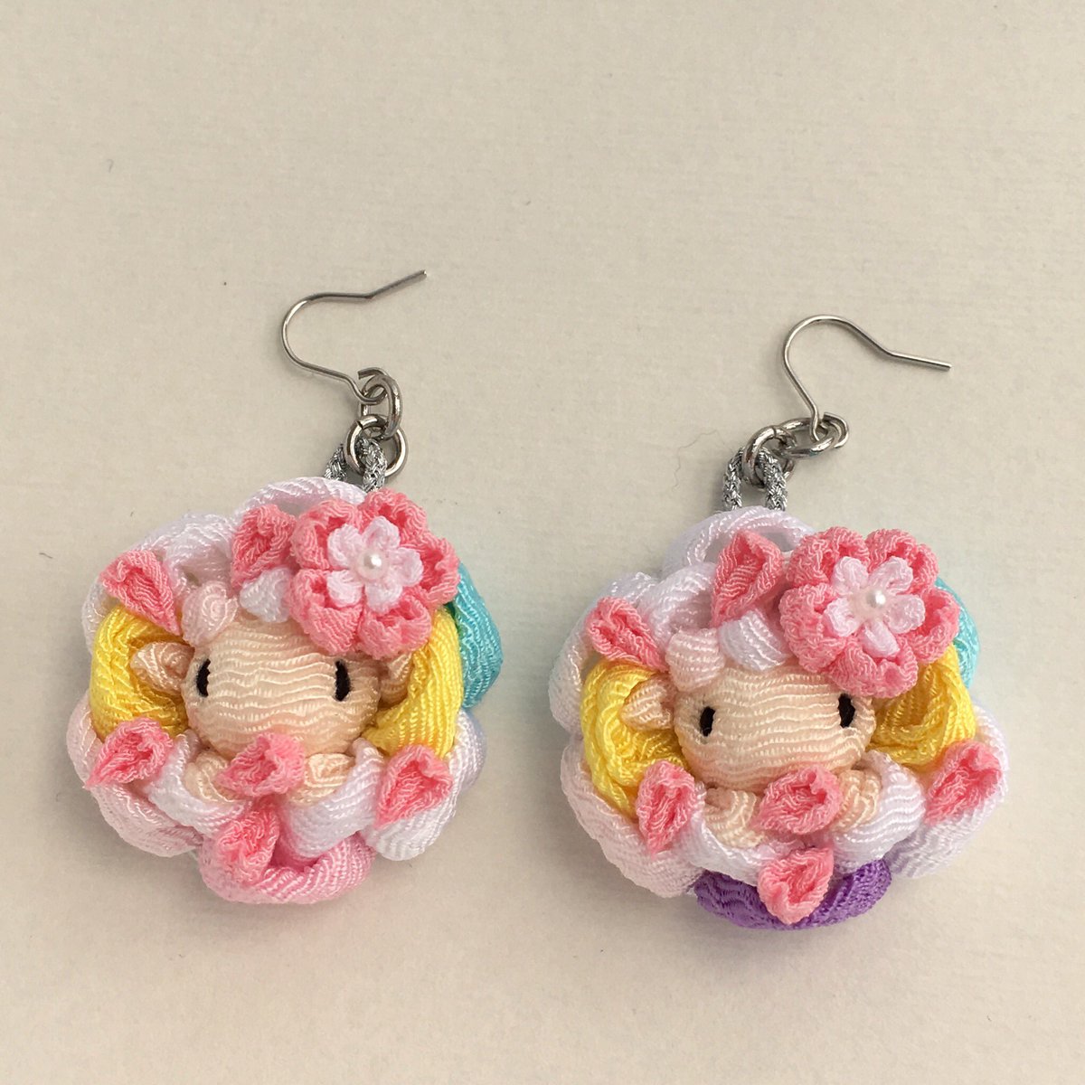 13 141 これがこうなってこうなりました🐏 桜吹雪の羊のピアスと三色羊は夕方ミンネに出品予定です #羊工房 #つまみ細工 #羊 #桜 19/03/15 14:04