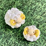 これがこうなってこうなりました🐏 桜吹雪の羊のピアスと三色羊は夕方ミンネに出品予定です #羊工房 #つまみ細工 #羊 #桜