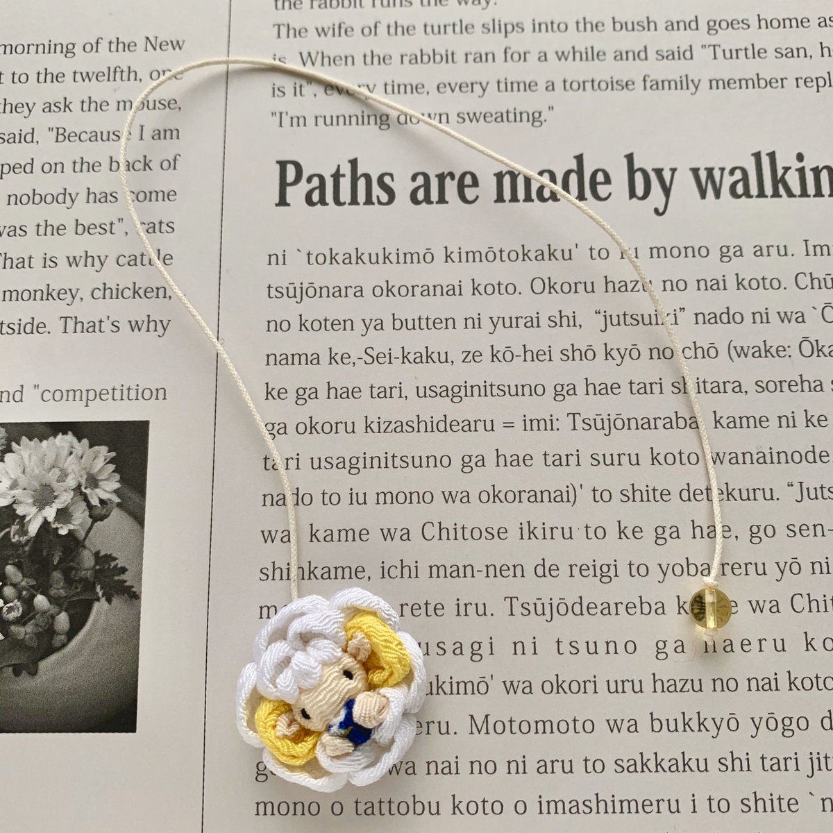 羊のしおりはこんな感じで本に挟んで使えます。 【つまみ細工】羊のしおり by 帽子屋 minne.com/items/17275270 ハンドメイドマーケットminne #羊工房 #つまみ細工