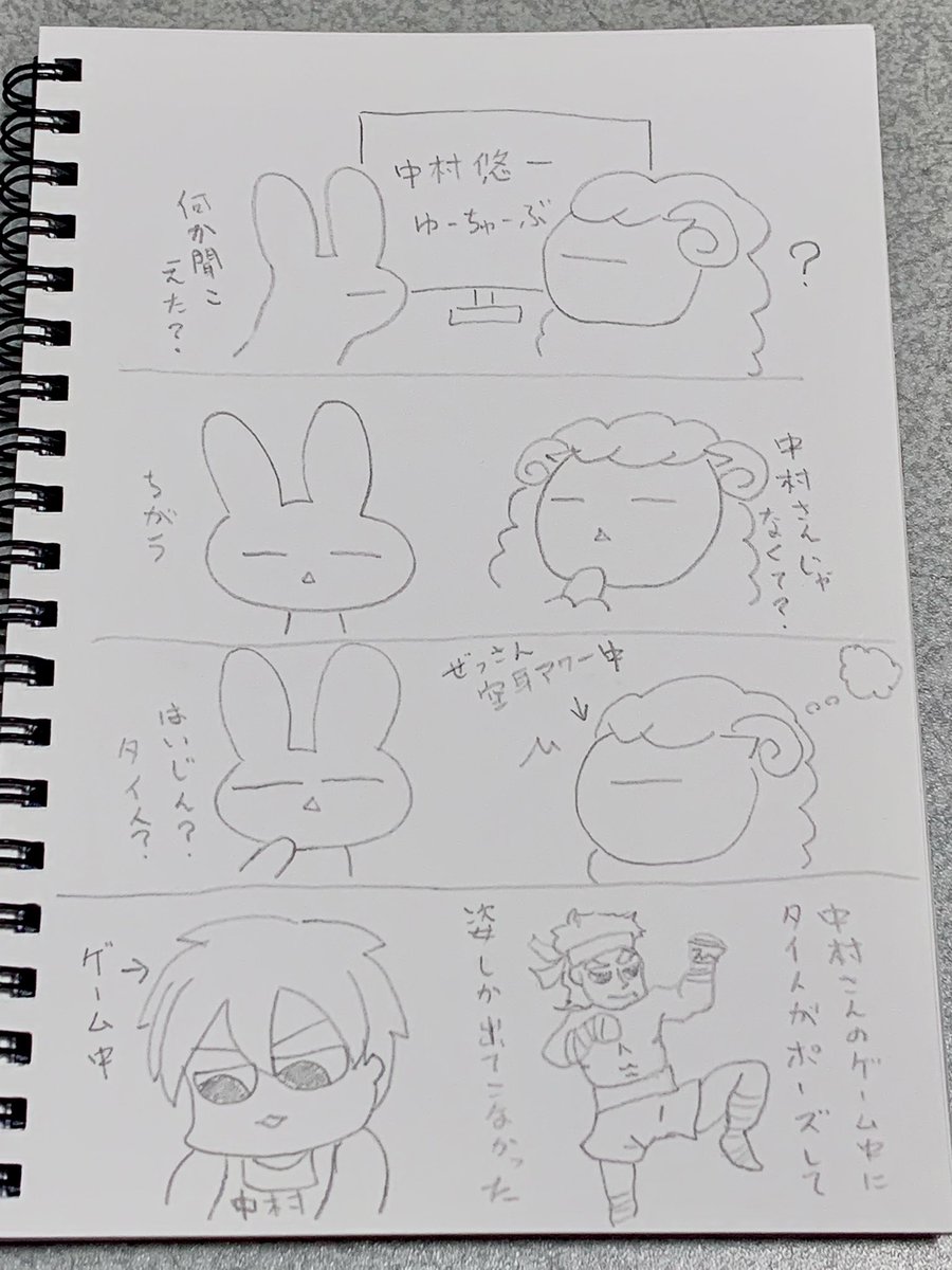 雑ですいません。寝ようとした時中村さんがライブやっていて見ていたら、旦那との会話で中村さんのゲームの後ろでタイ人がムエタイポーズで構えて声出さない様に堪えている姿しか思い浮かばなくてツボに入って爆笑してました。これ呟かなきゃ眠れないと思って書いちゃいました。#らくがき #中村悠一