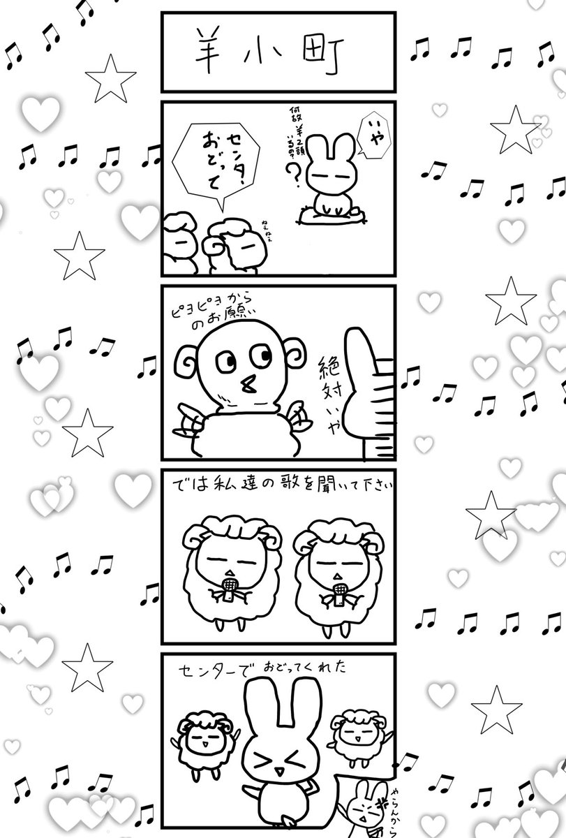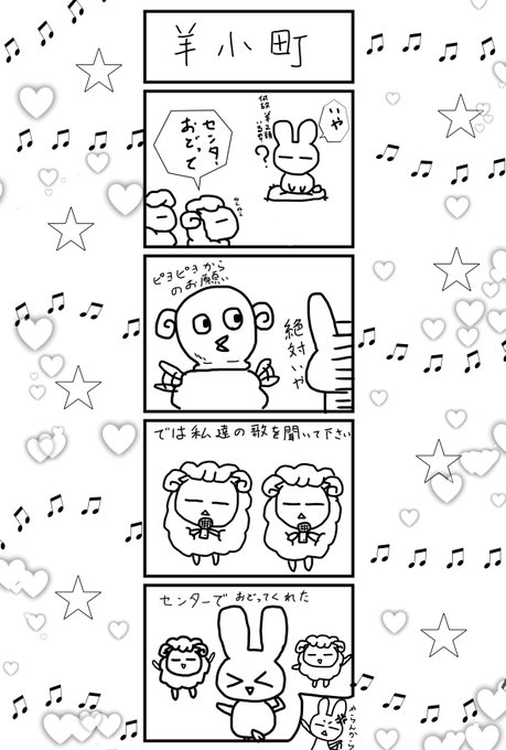 推しの子楽しく見てます。羊と兎で再現してみましたが、では私達の歌を聴いてくださいからの重曹ちゃんがセンターやった流れが面白かったです🤣 #推しの子 #四コマ漫画