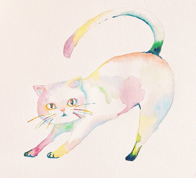 46 728 いつか溶けるネコ #水彩画 #絵描きさんとつながりたい 23/03/10 10:16