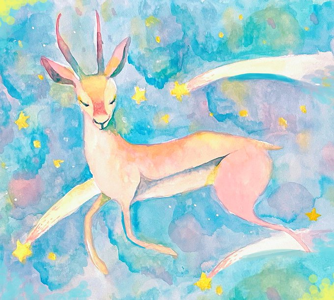 19 312 ーそしてそのガゼルは、こんやも星空をわたって、かなしいひとのうえに、やさしいゆめを降らせているのです。 #絵かきさんと繋がりたい #水彩画 23/05/30 18:39