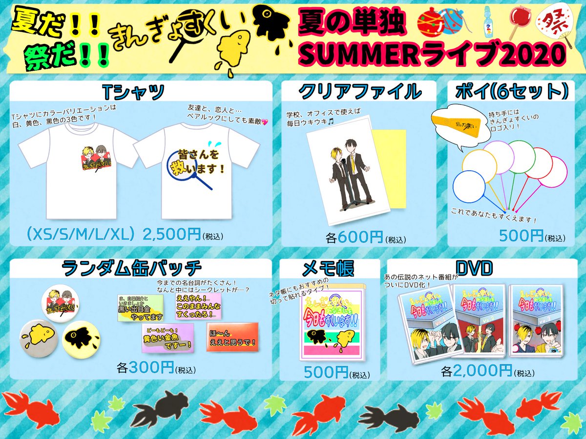 きんぎょすくい夏ライブのグッズ出たってー!!! 絶対行く(*'▽'*) #たかにど傀逅