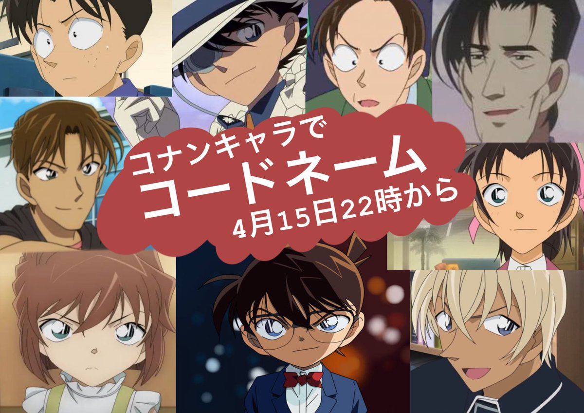 🌸企画のお知らせ🌸 4月15日22時〜 コナンキャラでコードネームやります!!✨✨ 是非遊びに来てね〜👋💓 参加者はここのリプ欄で↓↓↓