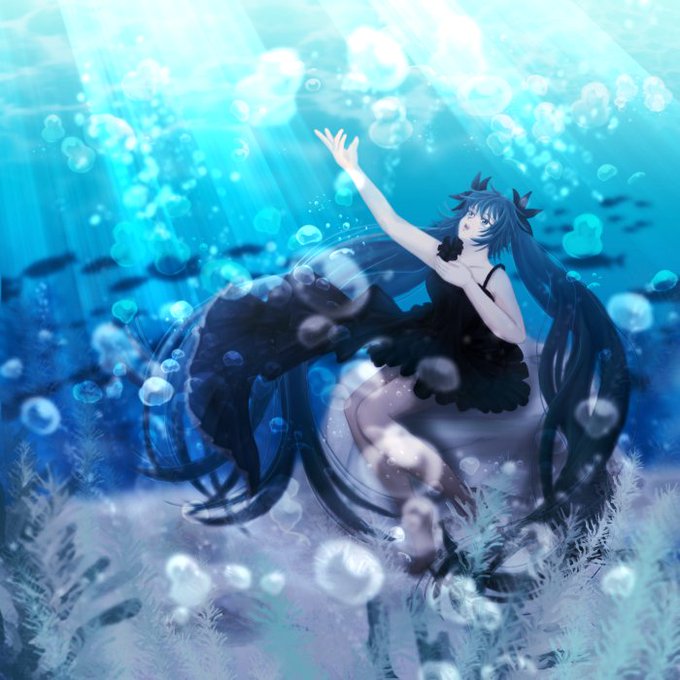 人物と背景が馴染まなくて苦労したけど、何とか完成した! #絵描きさんと繋がりたい #イラスト好きな人と繋がりたい #みんなで楽しむTwitter展覧会 #初音ミク #VOCALOID #深海少女