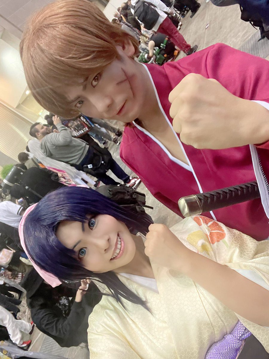 #るろうに剣心 併せ良かった…誰もが小さい頃傘を手にチャンバラごっこやって、自然と構えとか覚えますよね。 らんさんの剣心が身長含めてめちゃ剣心で😇せめて俺は実写版寄りになれたかな? 次に併せをやる時は、身長を活かして四乃森蒼紫をやりたいと存じます☺️ #AJコスプレ #アニメジャパン2023
