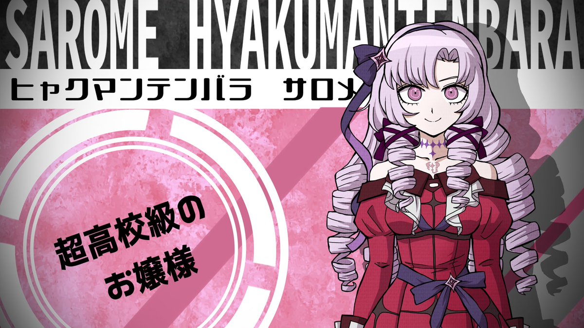夜なべして描いたスーパーダンガンロンパ2のキャラ紹介風スチル風お嬢様✨ トレスではございません! フォント等は公式のものにできるだけ似せたものを使用させていただいております! 無印の時作れなかったので……! #サロメ百万展 #サロメ満点配信ですわ