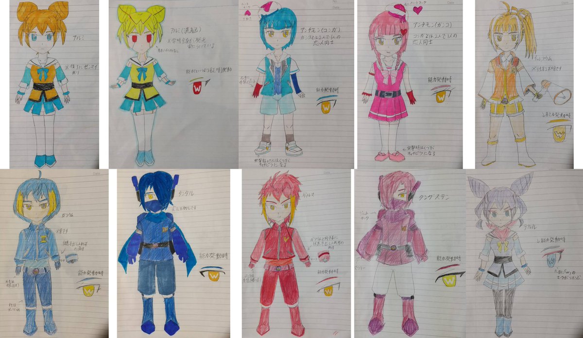3 7 #今月描いた絵を晒そう クッパ7人衆擬人化全員とワルメカ擬人化(ゲルマとタングステン)を描いた 21/03/30 17:06